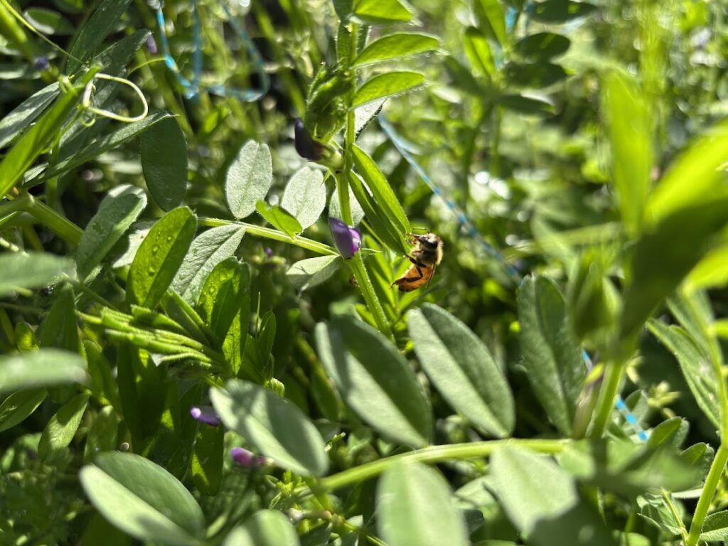 ハウスの近くの草むらには露を吸いに来たミツバチの羽音が響いていました。春はあちこちで命を感じる希望の季節ですね!