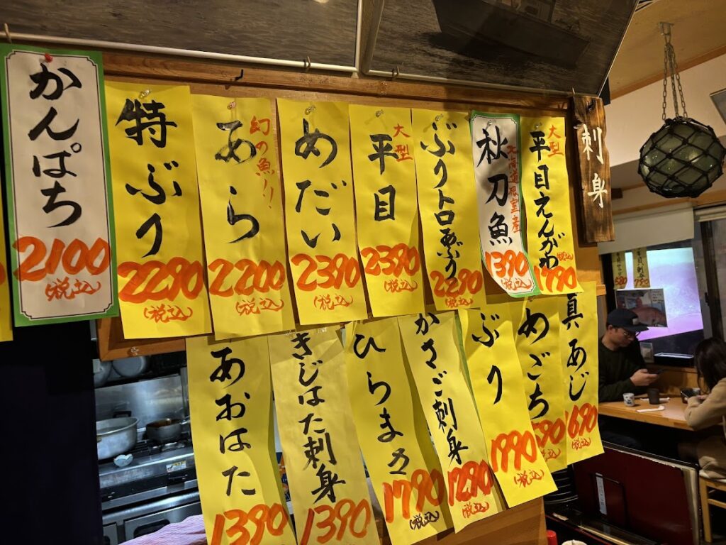 聞いたことのない魚のメニューがずらり、、、おいしかったです!