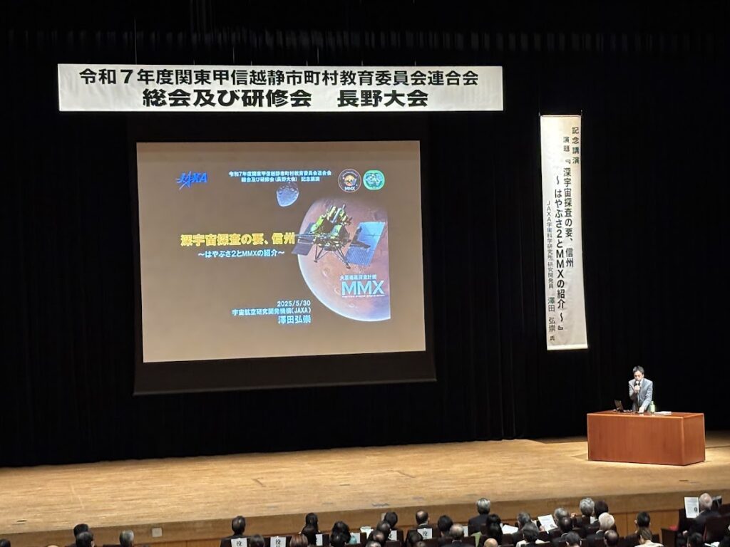 関東甲信越静市町村教育委員会連合会総会 2025 5/31 私たちのこと 2025-05-31 上記のような会議が長野市で開催され、出席させていただきました。これだけ漢字が並ぶと??ですね。庶民の私にとってはこれだけで敷居が高いです。教育長はじめ委員の皆様、事務局の方お世話になりました。ありがとうございました。 研修内容・次期学習指導要領の背景と検討の方向性(文科省武藤久慶氏)・小惑星探査機はやぶさ(JAXA研究開発員 澤田弘崇氏、長野出身) ちょうど今年種子島宇宙センターに行ったばかりだったのでタイムリーでした。 私たちのこと この記事が気に入ったら フォローしてね! Follow Me 記事のシェアをお願いします🐝 URLをコピーしました! 田植え終わりました! 楽しかった手植え! 関連記事 ツツジも引っ越し! 2025-12-23 <うんぱんマン導入!> 2025-12-19 近所にクマ出没! 2025-11-19 お世話になります 2025-10-13 山根ご夫妻ご来園! 2025-09-20 シェラリゾート白馬/金澤総料理長 2025-09-15 親父も里帰り 2025-08-17 突然の訪問者 2025-08-16