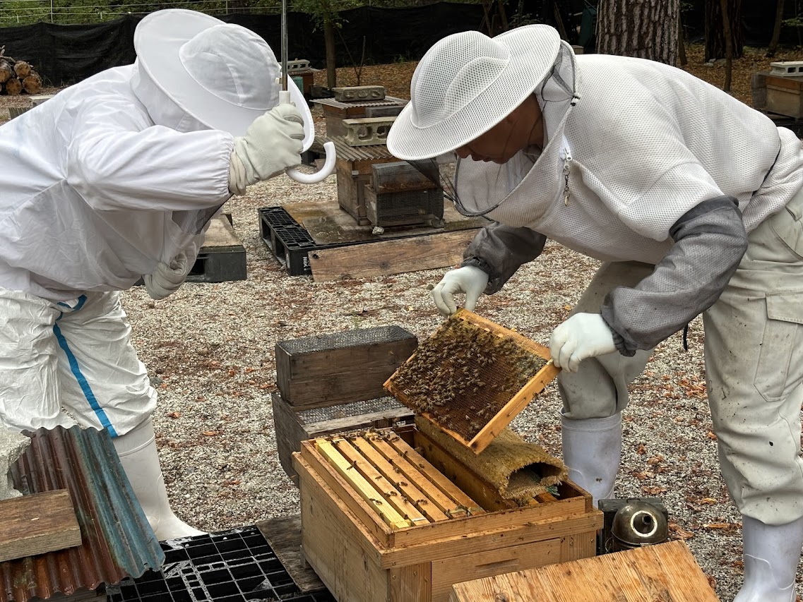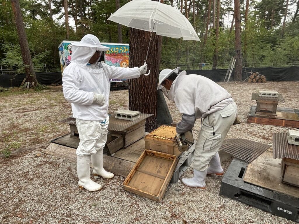 年に一度、家畜保健所の検査員によるミツバチ検査がありました。雨降りの中の検査になりミツバチに大変な迷惑をかけましたが、「きれいに手入れされてますね」とのこと、無事合格しました。これで来年までミツバチを飼育することができます。