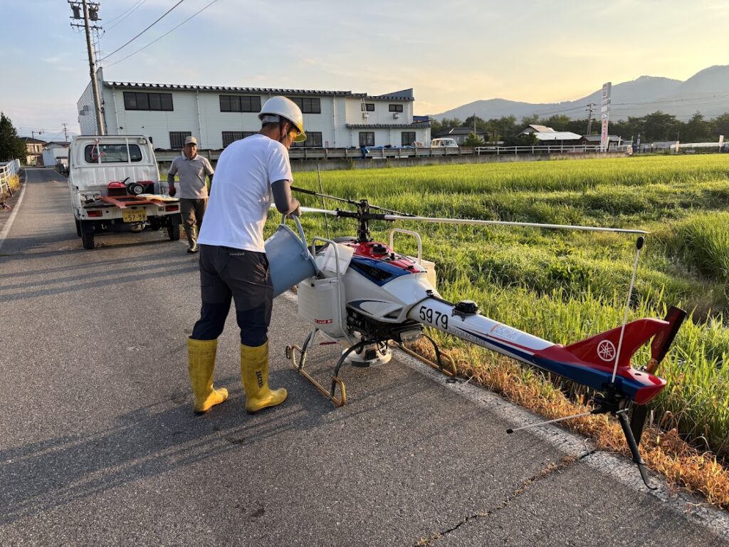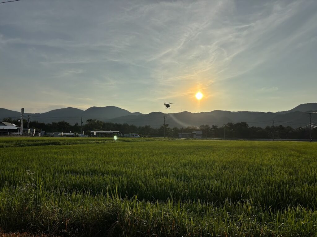 それに先立ってこの日早朝5時、穂が実るための栄養補給として有機肥料を散布しました。暑さが続く中、養分を吸収しておいしいお米を実らせてください。